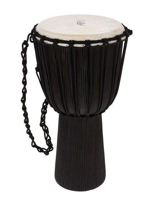 Model wyposażono w solidny system strojenia linowego, który pozwala precyzyjnie dostroić instrument i uzyskać idealne napięcie membrany. Z wysokością około 60 cm, to djembe łączy tradycyjne rzemiosło z doskonałą jakością wykonania.